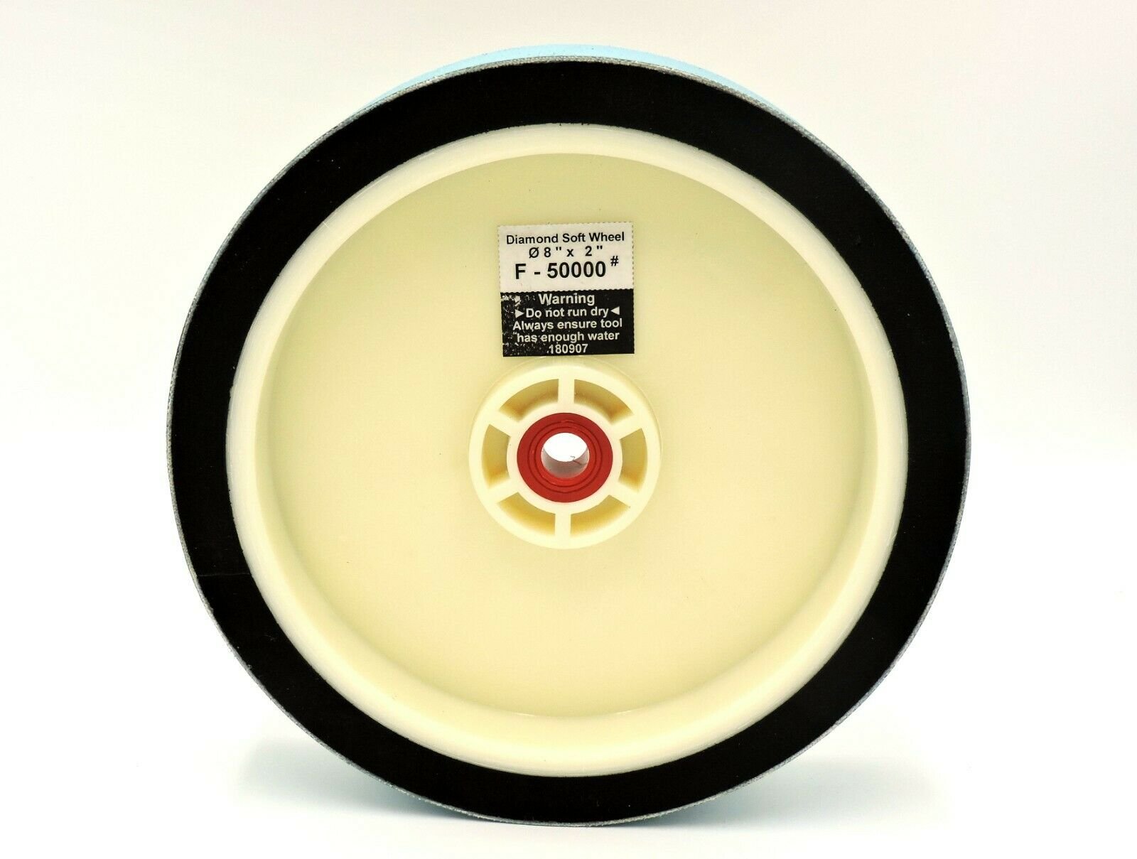 Premium Quality 50000 grit 8 inch x 2 inch diamond soft resin wheel for grinding and polishing.