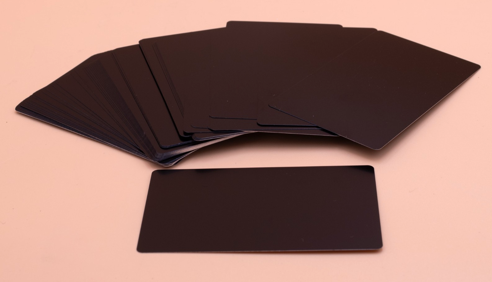 The deep black colour ensures a sharp contrast for engraved text and logos, making them stand out. These cards are made from durable aluminium, ensuring longevity and a professional look. Perfect for networking events, these cards leave a lasting impression with a touch of personalisation.
