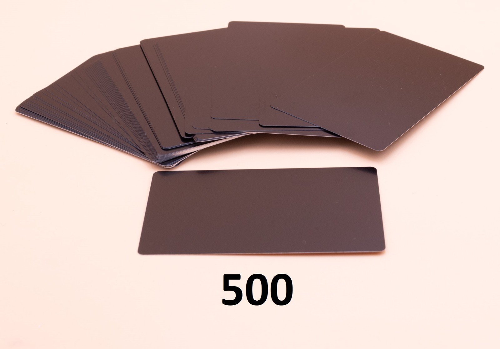 Craft your own distinctive name cards with these high-quality blank gloss black metal business cards, ideal for laser engraving. With a sleek 0.2mm thickness, these aluminum cards offer a sophisticated touch to your professional branding. The pack contains cards ranging from 50 to 300, providing ample stock for all your business needs.