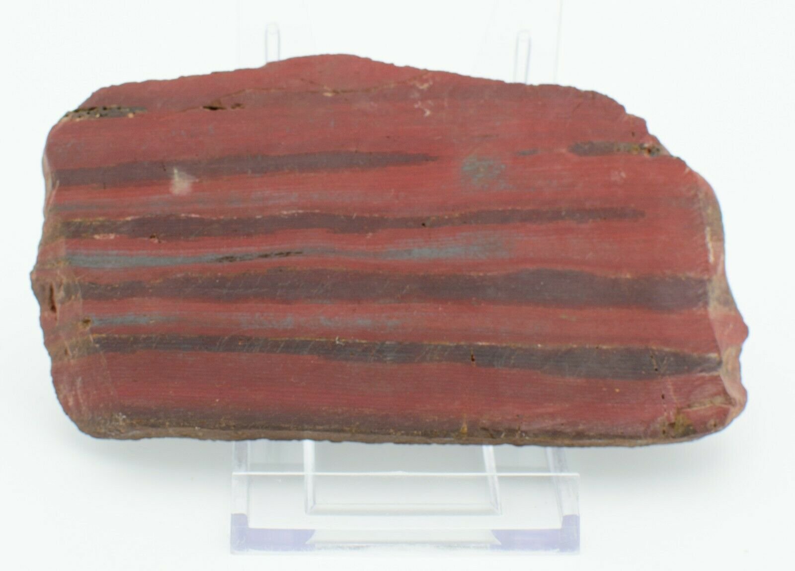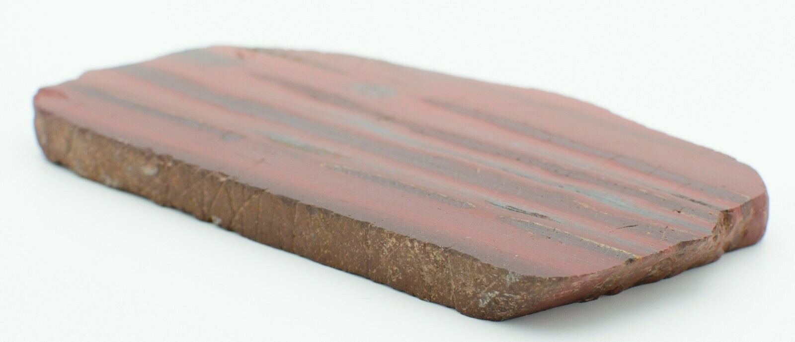 This banded iron slice consists of mainly red jasper and layers of hematite.