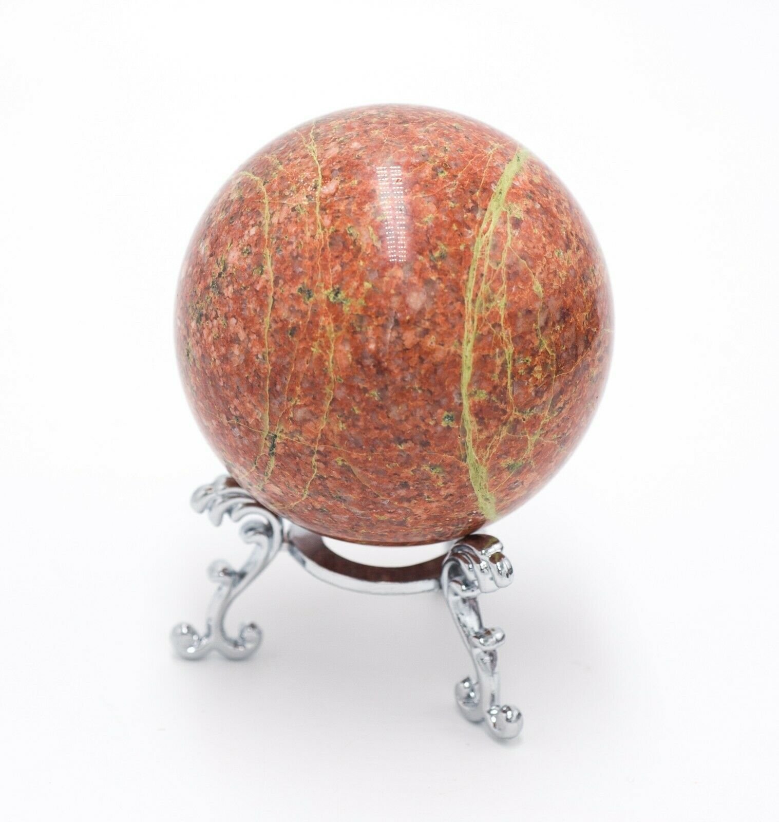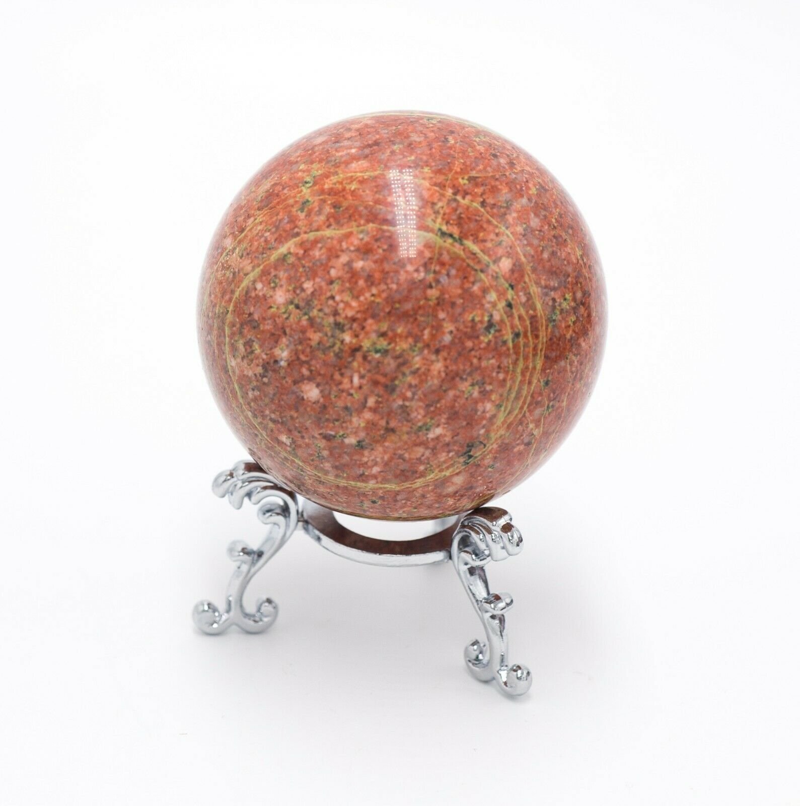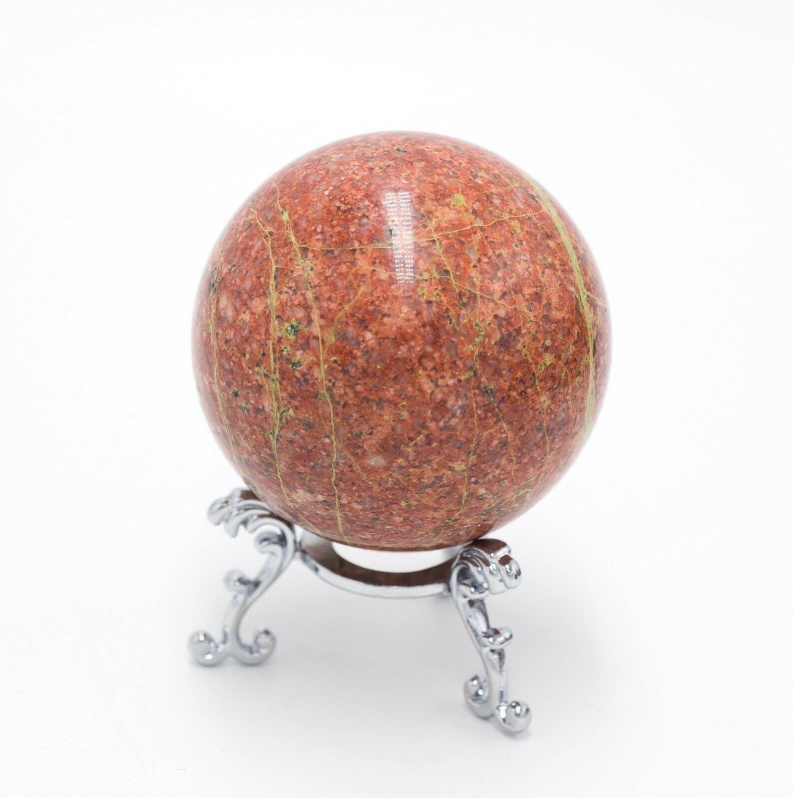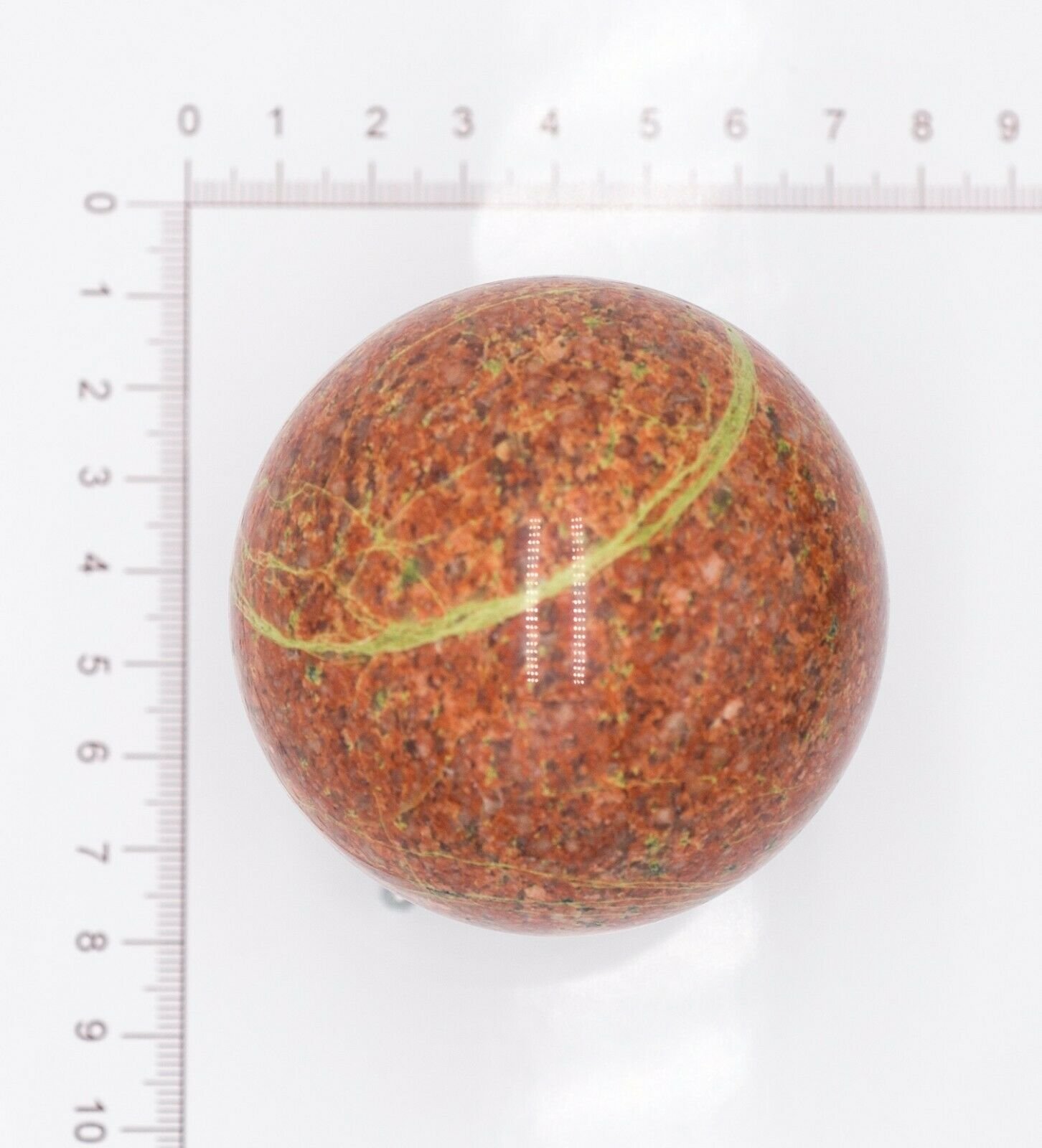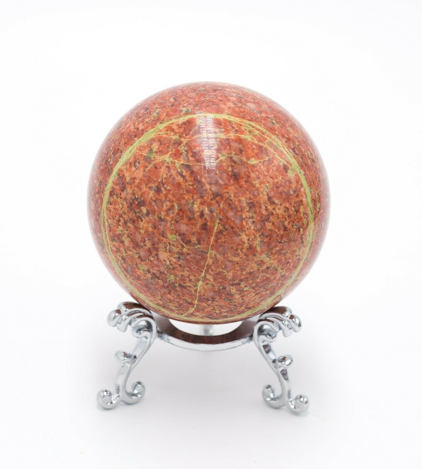Epidotized rhyolite is an altered felsic volcanic rock. This sphere is an unusual rock as rocks are not normally this altered.