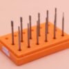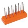 Hager & Meisinger manufactures burs that have not only the closest tolerances, but will also maintain those tolerances over time. LYNX burs cut without chatter. The cutting edges on the head are precise and consistent. A special tungsten alloy and careful tempering assures these burs retain their sharpness. This LYNX set has 12 square cross-cut burs, one of each size.