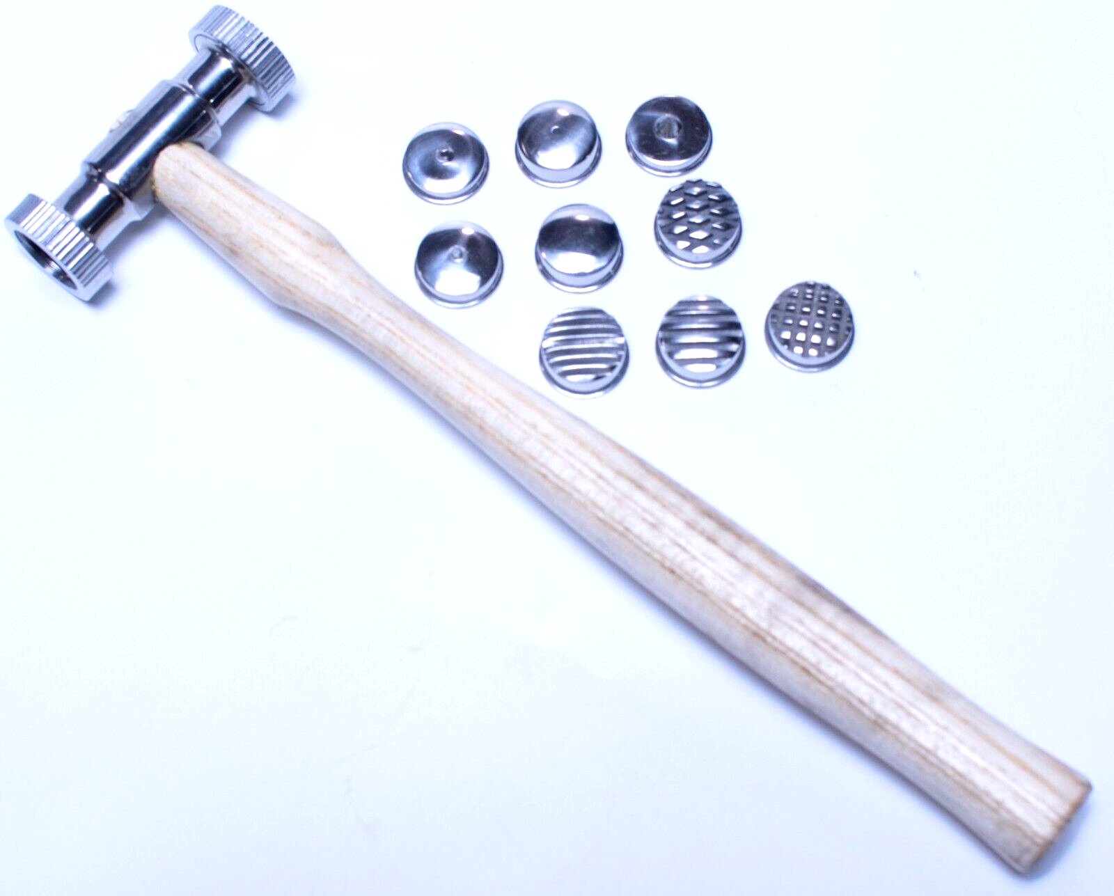 This hammer is 240 long and has a double sided head so you can have 2 texturing faces at the same time. One either side of the hammer head.