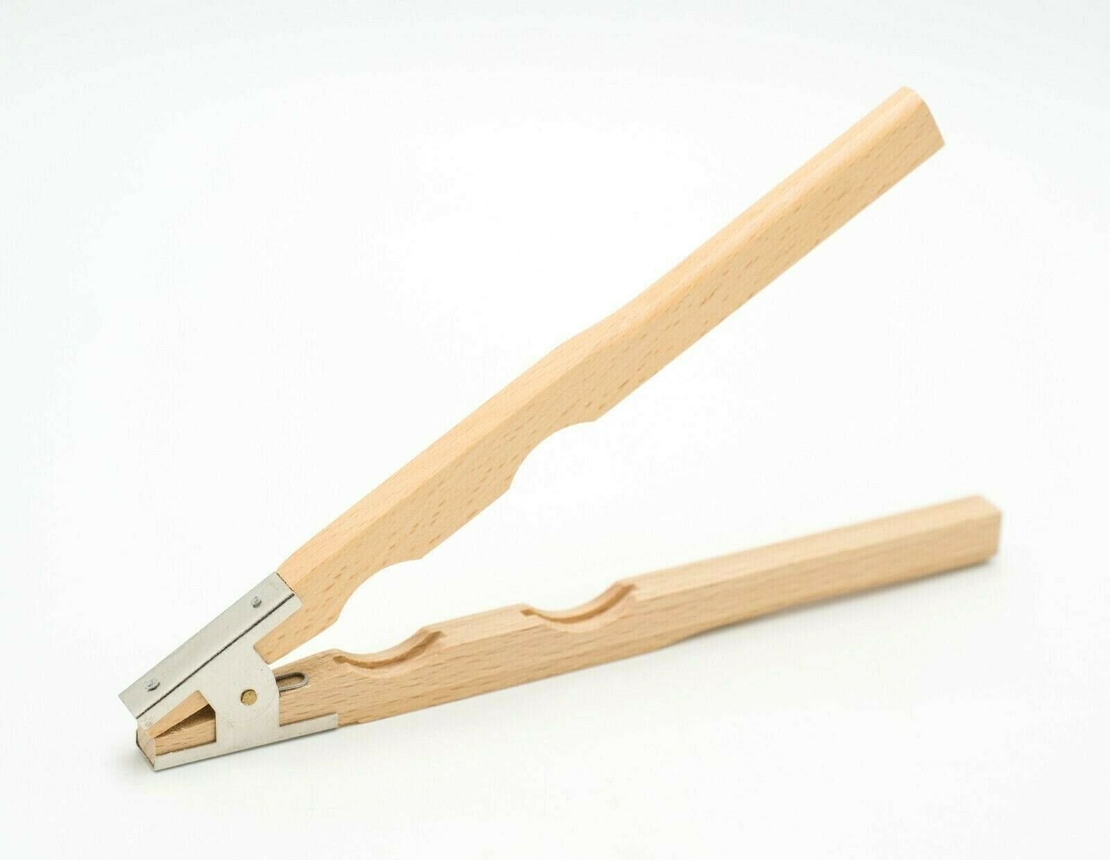 Hand held bead clamps are used to hold round objects such as beads so they can be ground, drilled or polished while keeping your fingers safe.